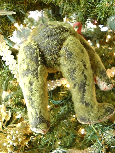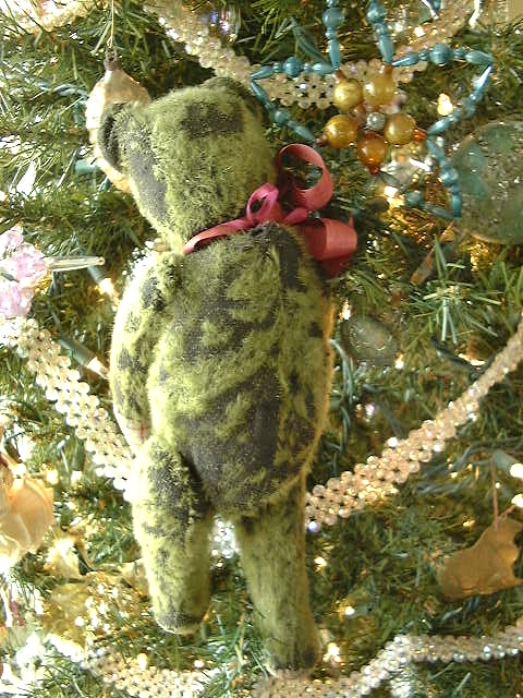 In person he looks very dark green depending upon the light with a faded blackish backing and about 50-60% of his fur remains. See photos from the German price guide book Teddybären AB 1904 , well written & depicted by notable authors & collectors Christel & Rolf Pistorius.